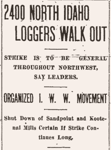 While the railroad strike was averted, the threat of a major lumber strike still hung over the region. The Industrial Workers of the World (IWW) had been actively organizing in lumber camps throughout North Idaho for the past year, with similar activities throughout the Pacific Northwest. The radical union found support among loggers who worked long hours for little pay, living in remote, often squalid camps for months at a time. In March, officials from the IWW and two other labor organizations agreed to stage a coordinated lumber strike across the Pacific Northwest on July 16.