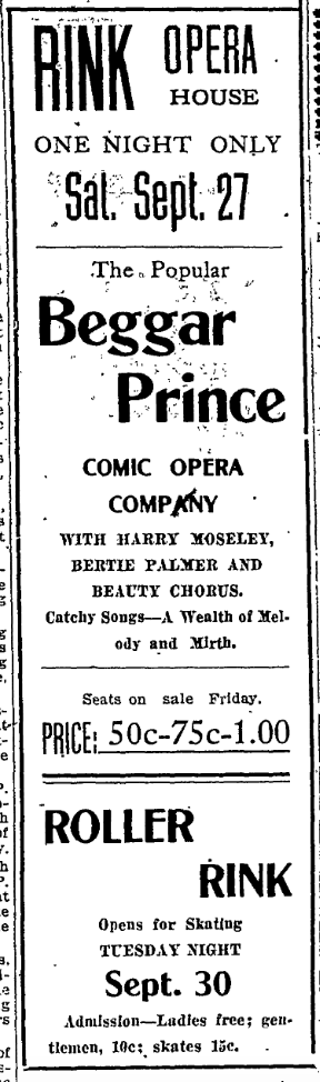 “Latest Fad Is The Roller Skate Two Step,” Seattle Star, 1 September 1906, 1:4-5; https://www.loc.gov/rr/news/topics/rollerskating.html; “Princess Rink,” Pend d’Oreille Review, 7 February 1907, 8:2; “The Princess Rink,” Pend d’Oreille Review, 7 February 1907, 8:4; “Judge Woods Finds For Lorenzi,” Pend d’Oreille Review, 18 December 1908, 16:3; “Big Rink Is Opened,” Pend d’Oreille Review, 13 June 1907, 1:5; Pend d’Oreille Review, 18 September 1908, 5:2; Pend d’Oreille Review, 29 September 1911, 5:1; “Many Attend Skating Carnival,” Pend d’Oreille Review, 22 December 1911, 10:2; “Decide Championship Saturday,” Pend d’Oreille Review, 19 January 1912, 5:4; “Langworth Wins Skating Race,” Pend d’Oreille Review, 26 January 1912, 1:5; Pend d’Oreille Review, 28 April 1911, 5:3; Pend d’Oreille Review, 29 September 1911, 5:1; Pend d’Oreille Review, 10 January 1908, 5:2; Holly George, Show Town: Theater and Culture in the Pacific Northwest, 1890-1920 (Norman: University of Oklahoma Press, 2016), 115-123; Pend d’Oreille Review, 26 September 1907, 5:3; “Twas a Fine ‘Texas Steer,’” Pend d’Oreille Review, 17 October 1907, 1:2; “Kellogg-Haines Singing Party,” Pend d’Oreille Review, 17 October 1907, 1:4; “The Tennessee Jubilee Singers,” Pend d’Oreille Review, 17 April 1908, 1:6; Pend d’Oreille Review, 30 April 1909, 2:4; “Hoodoos,” Pend d’Oreille Review, 23 April 1909, 3:3; “And the Greatest of These Is Charity,” Pend d’Oreille Review, 27 May 1910, 2:2; “Sam Small Debates,” Pend d’Oreille Review, 27 May 1910, 6:1-5; “Henry George, Jr., To Lecture,” Pend d’Oreille Review, 3 March 1911, 1:4; “Henry George, Jr., Fails to Arrive,” Pend d’Oreille Review, 17 March 1911, 4:5; “Negro Educator To Lecture,” Pend d’Oreille Review, 7 March 1913, 3:3-4; “Solving Of Negro Problem,” Pend d’Oreille Review, 14 March 1913, 3:4; “Bonner County Greets Roosevelt With Mammoth Crowd,” Pend d’Oreille Review, 14 April 1911, 1:1-6; “Senator Borah Tonight,” Pend d’Oreille Review, 28 October 1910, 1:2; “Eugene Debs to Lecture Here,” Pend d’Oreille Review, 12 May 1911, 1:4; Pend d’Oreille Review, 9 June 1911, 10:2; “I.W.W. Bring Their Big Drawing Card,” Pend d’Oreille Review, 9 February 1917, 1:5; “Community Responds to Country’s Call to Arms, Pend d’Oreille Review, 30 March 1917, 1:1-6; “Tim Hurley and Ed Cuff to Box,” Pend d’Oreille Review, 17 April 1908, 1:3; “Bum Fight A Fake,” Pend d’Oreille Review, 24 April 1908, 1:1; “Miller Wins The Bout,” Pend d’Oreille Review, 20 February 1914, 3:1; “Will Play Indoor Baseball,” Pend d’Oreille Review, 15 January 1915, 1:6; “Arrange Indoor Schedule,” Pend d’Oreille Review, 22 January 1915, 1:4; “Panhandles Step Into Lead,” Pend d’Oreille Review, 19 February 1915, 3:4; “Panhandles Cinch Pennant,” Pend d’Oreille Review, 5 March 1915, 1:1; “First Games Next Sunday,” Pend d’Oreille Review, 29 October 1915, 1:6; “City Council Gets Through Some Important Business,” Pend d’Oreille Review, 21 July 1916, 8:3; “Council’s Stroke of Economy To Do Away With Crosswalks,” Pend d’Oreille Review, 22 June 1917, 8:1; Pend d’Oreille Review, 18 September 1908, 5:2; Pend d’Oreille Review, 15 April 1910, 7:4; “Special At Rink Opera House,” Pend d’Oreille Review, 15 April 1910, 12:3; “Good Picture Show Coming,” Pend d’Oreille Review, 12 May 1911, 8:2; Pend d’Oreille Review, 18 April 1913, 5:3; “New Show House Opens Next Tuesday,” Pend d’Oreille Review, 21 September 1917, 1:6; “Old Landmarks Are Destroyed By Fire,” Pend d’Oreille Review, 15 September 1922, 1:1; https://www.loc.gov/rr/news/topics/rollerskating.html; maps of Sanpoint, Idaho, Sanborn Map Company (New York: New York City), January 1909:10, August 1921:17.