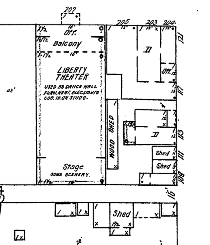 Liberty Theater, formerly Rink Opera House, as shown on Sanborn map from August 1921.